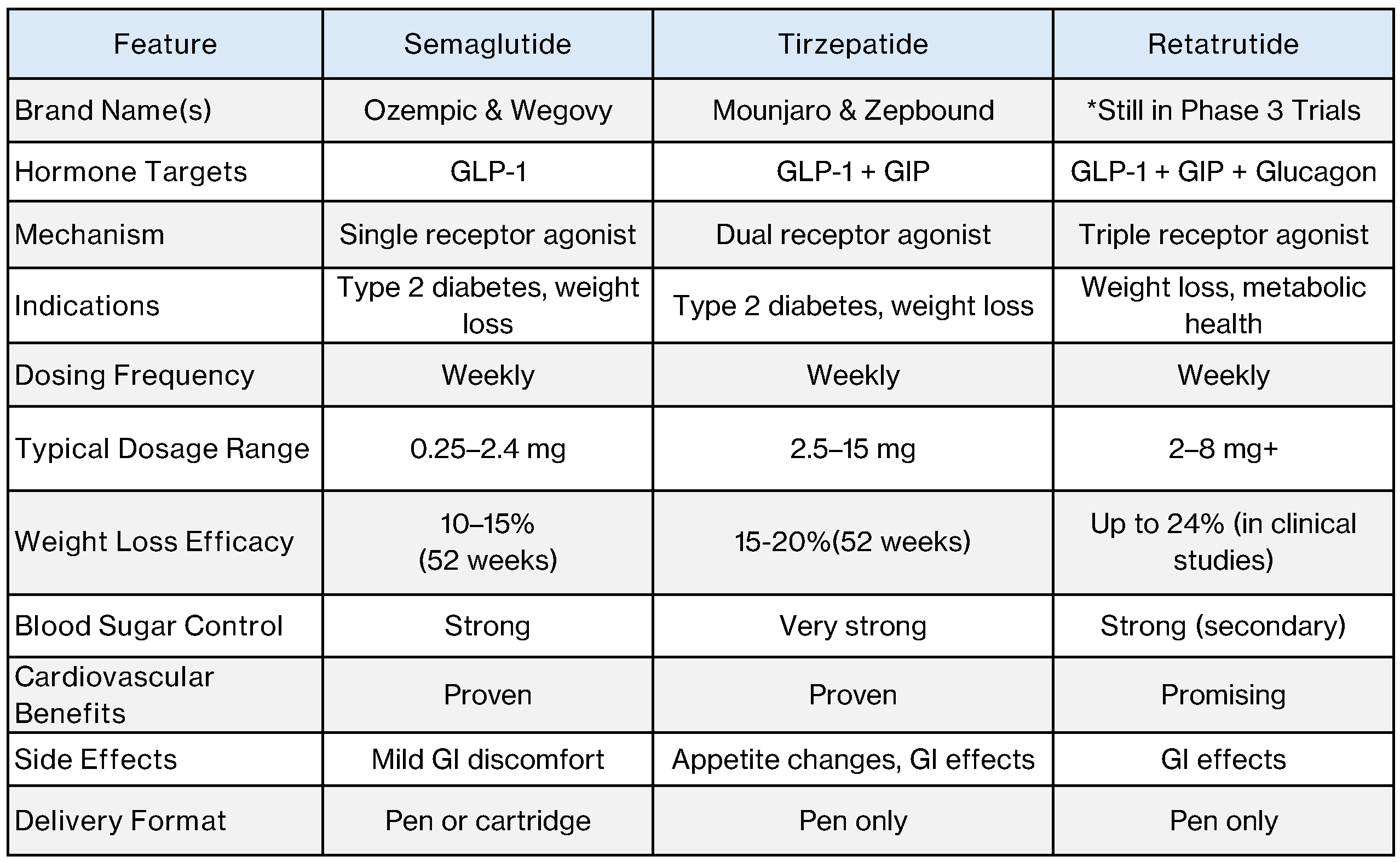 SEMAGLUTIDE VS TIRZEPATIDE VS RETATRUTIDE